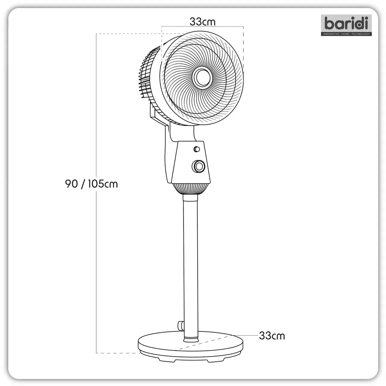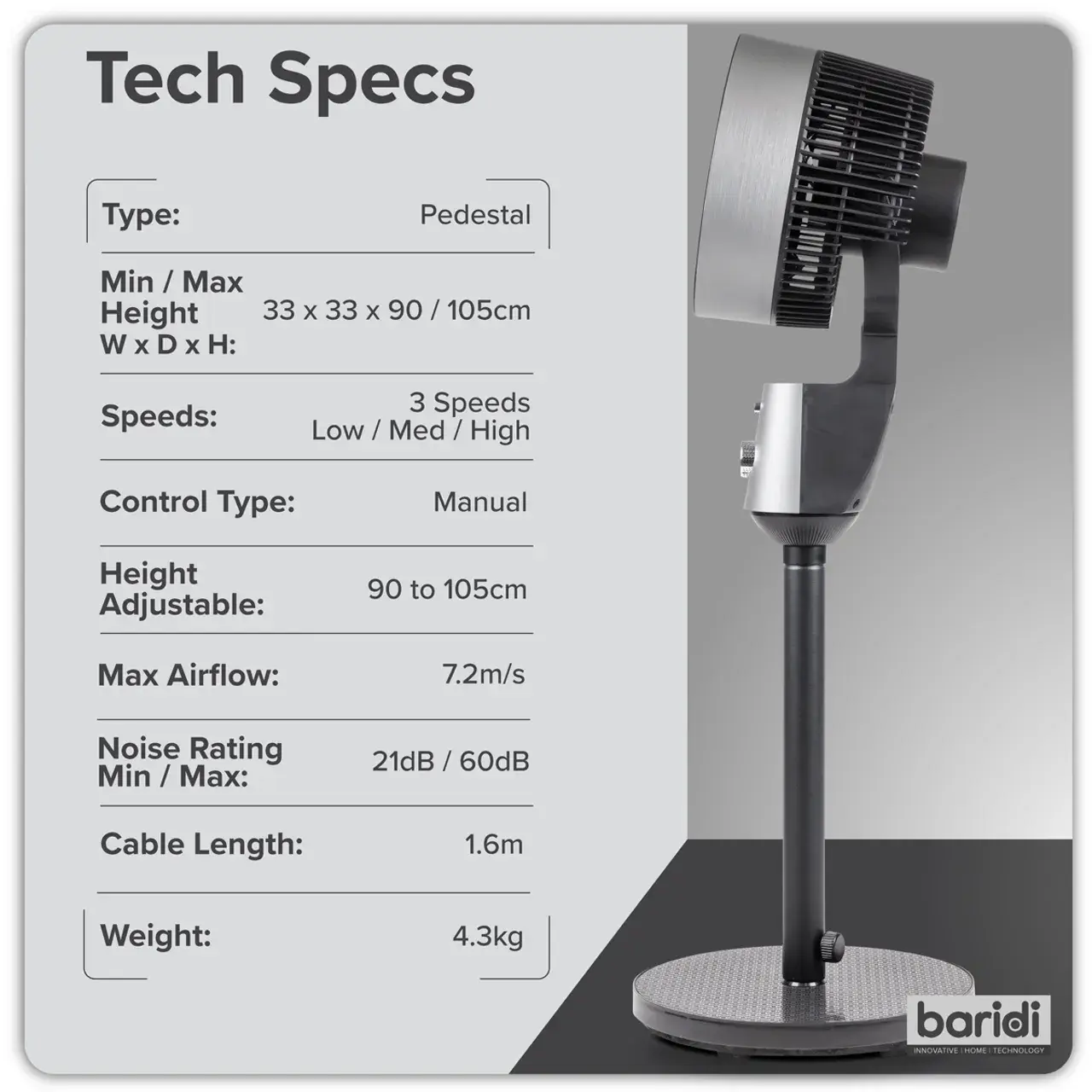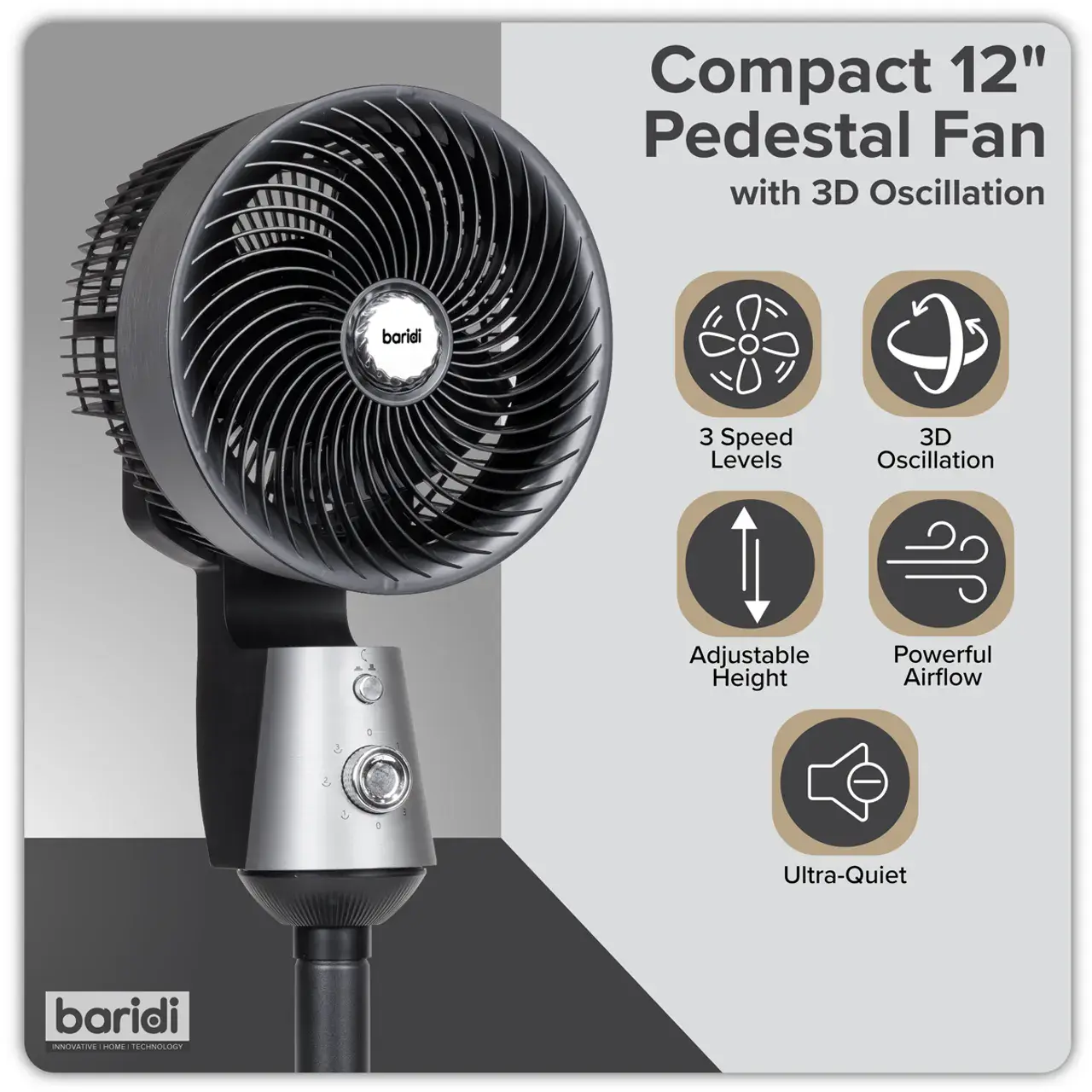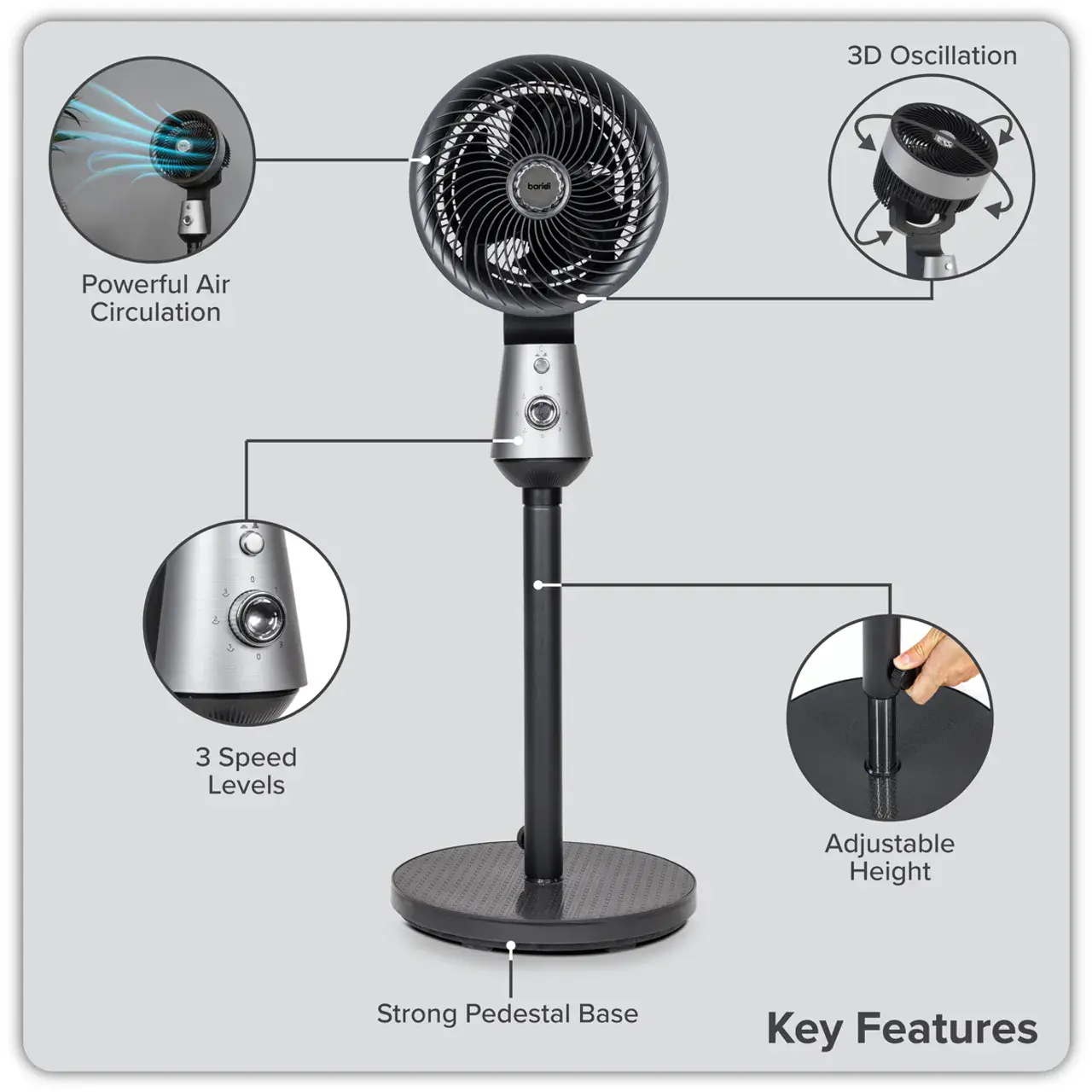 Baridi DH142 Pedestal Fan with Manual Control 10" - Grey