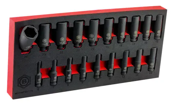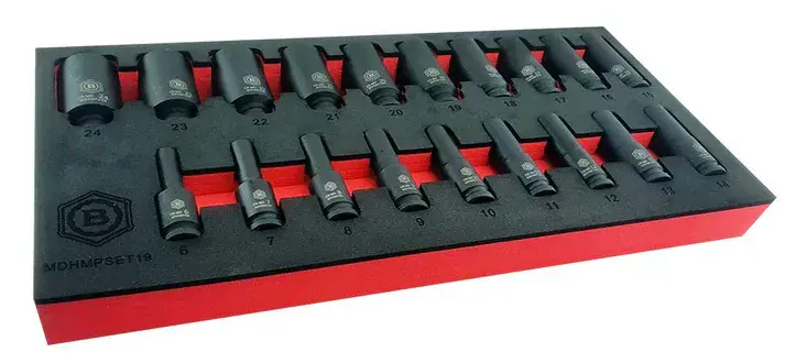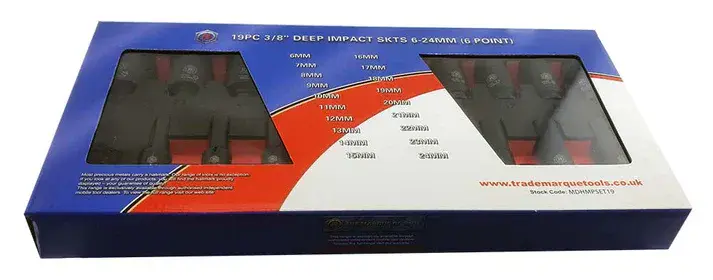 Britool Hallmark MDHMPSET19 3/8" Drive Deep Hex 6-Point Impact Socket 19 Piece Set