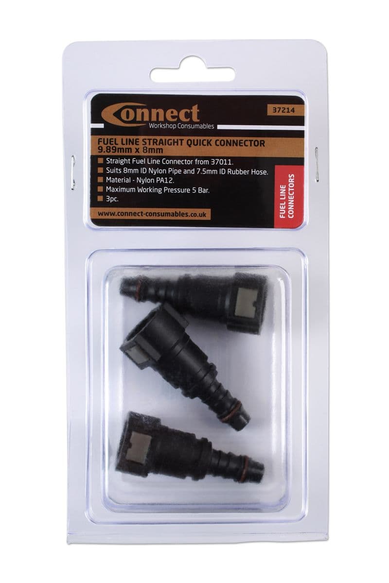 Connect 37214 Fuel Line Straight Quick Connector 9.89mm x 8mm Pk 3