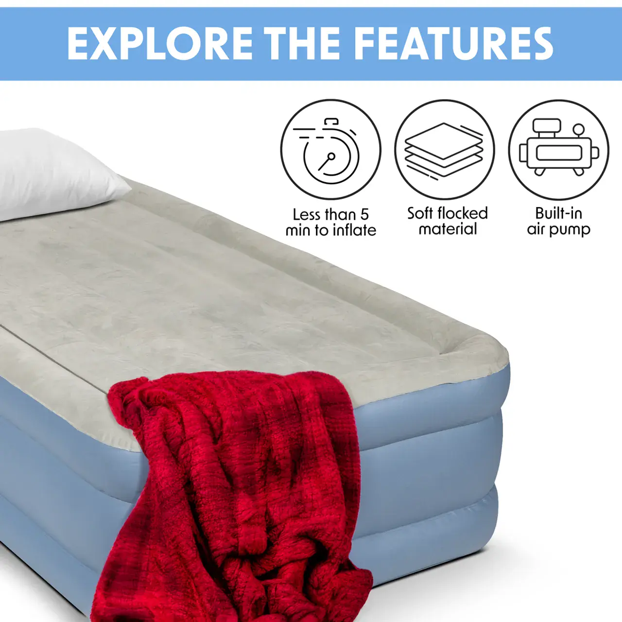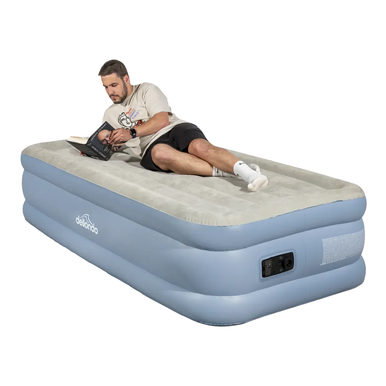 Dellonda DL146 Single, Inflatable High Raised Flocked Air Bed