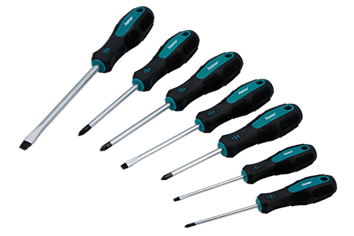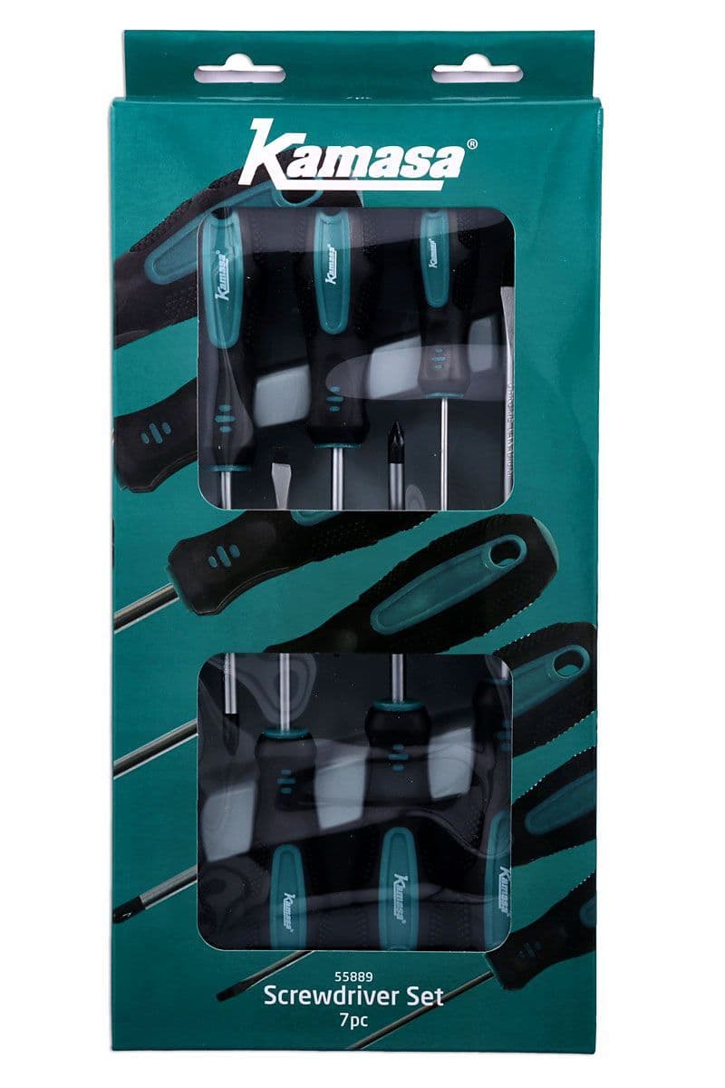 Kamasa 55889 7 Piece Screwdriver Set PH PZ Flat Soft Grip Handles Magnetic Tips