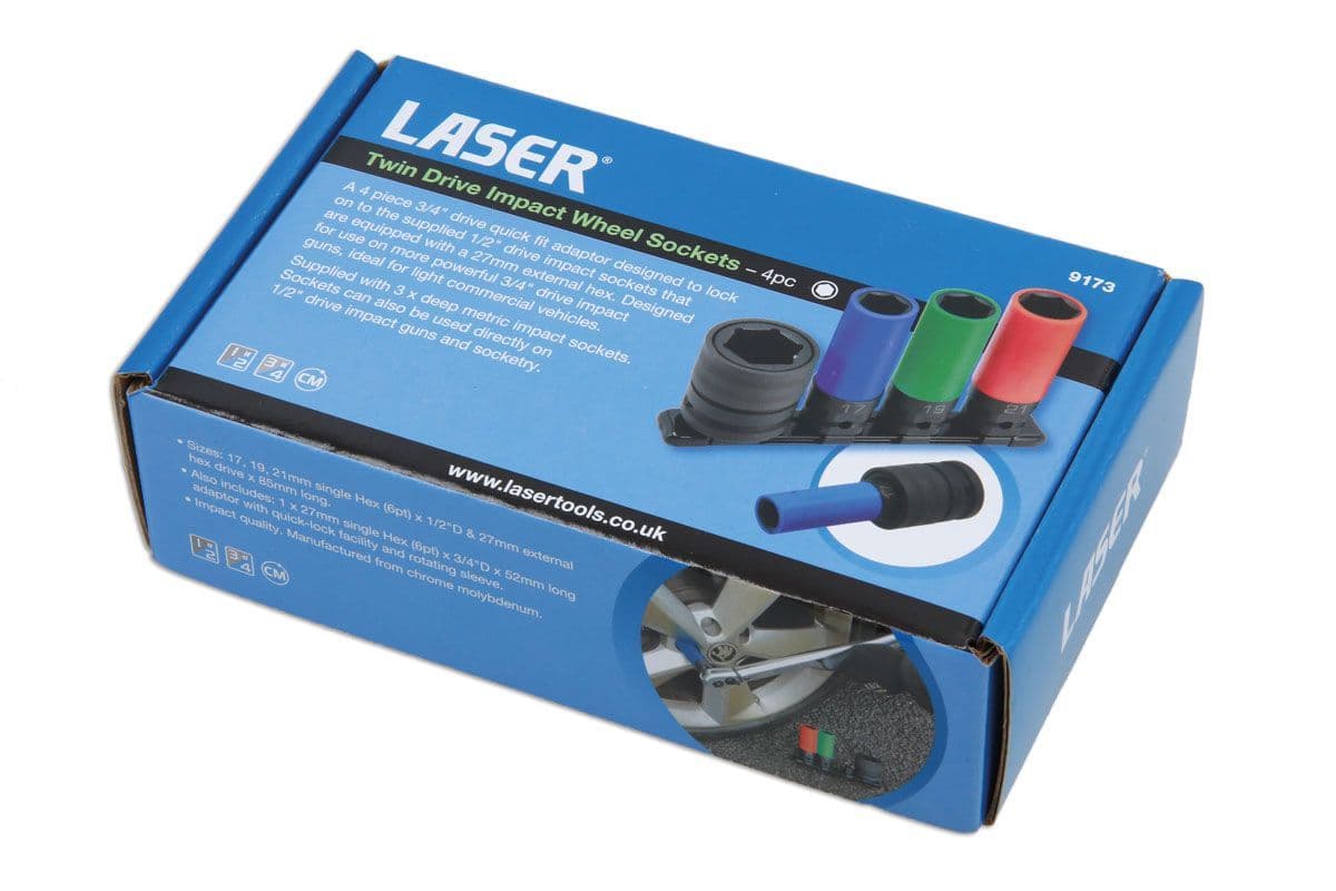 Laser Tools 9173 Twin Drive Impact Wheel Sockets 4 Piece