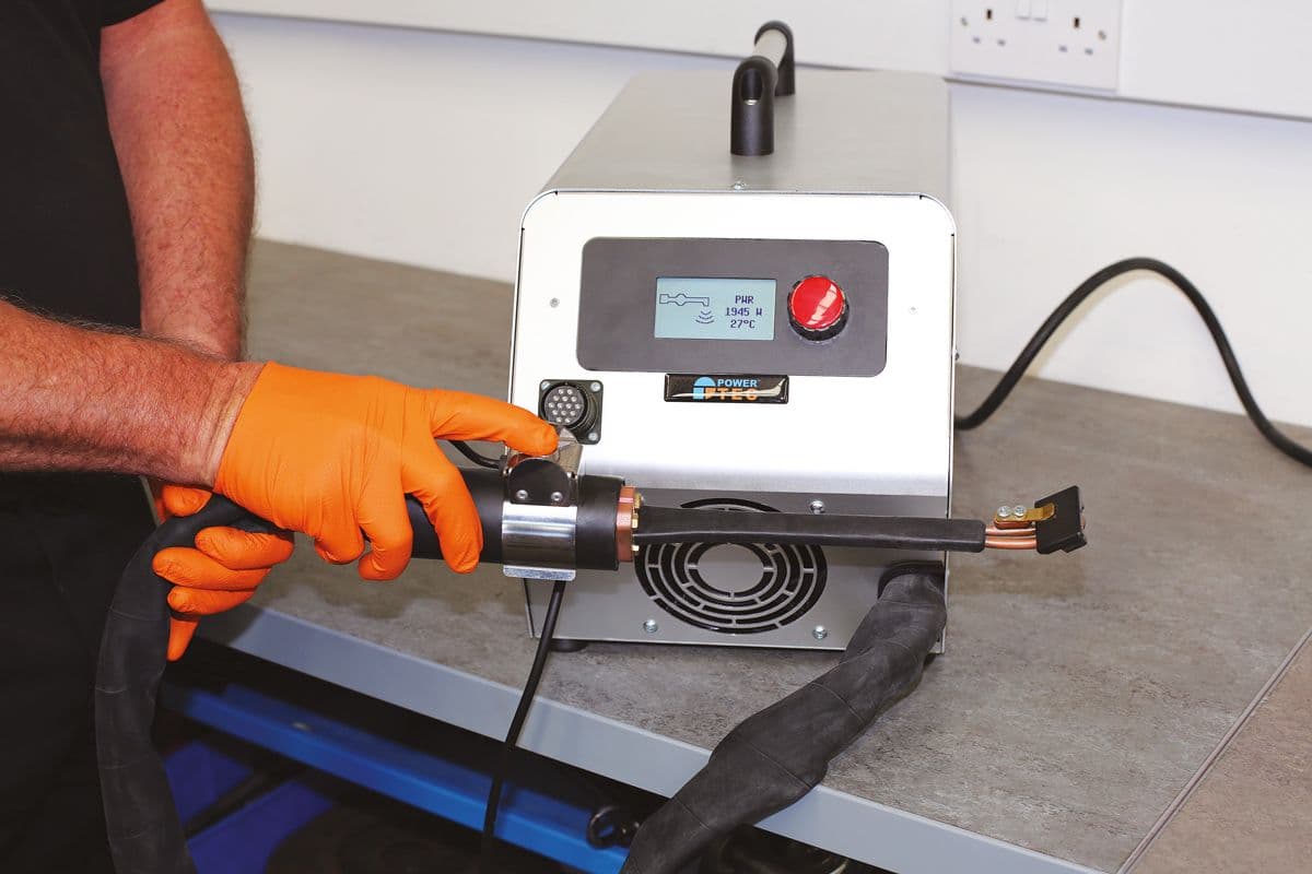 Introducing the Power-Tec 92405 Heat Inductor, the ultimate solution for quick and easy removal of bonded components and seized metal parts. With a powerful 3.5kw watercooled induction heater, this tool is perfect for both bodyshops and workshops. It effectively removes windscreens, plastic trim pieces, badges, nuts, bolts, and more, using electromagnetic induction to safely transfer intense heat without damaging the surrounding area. The included heating wand and glass remover block make it even more convenient and efficient. Say goodbye to struggling with corroded nuts and bolts - this flameless heat induction system has got you covered. Don't let trim, stripes, vinyl graphics, decals, underseal, and windows slow you down - the Power-Tec 92405 Heat Inductor has the perfect solution. Trust in its reliable performance and make your work easier. Get yours now and experience the power of electromagnetic induction heating.