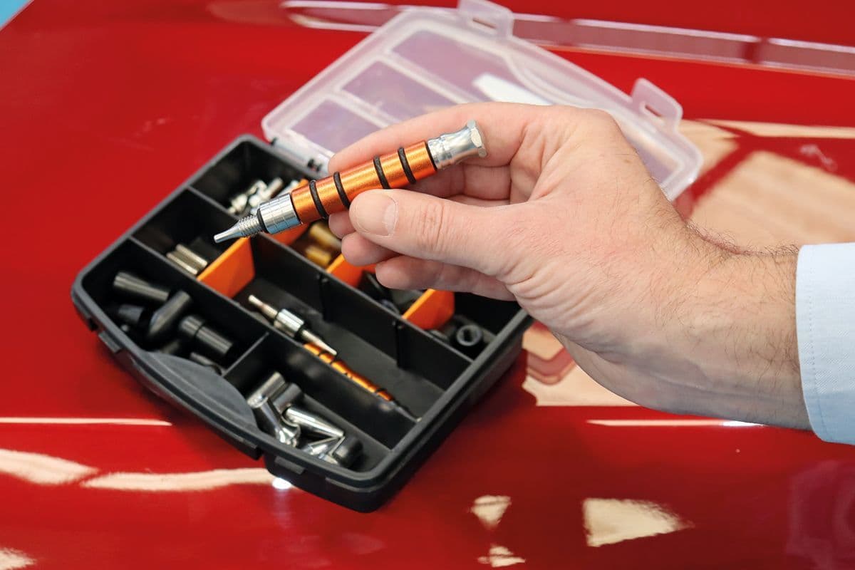 Not only is this kit efficient and effective, but it's also compatible with the Power-TEC telescopic PDR hammer (Part No. 92674), making it a must-have addition to your toolkit. Plus, the blue tool even features a magnet in the body for easy stowing during repairs. So why wait? Get your hands on the Power Tec 92689 PDR Tap Down Kit and achieve flawless results on your PDR projects.